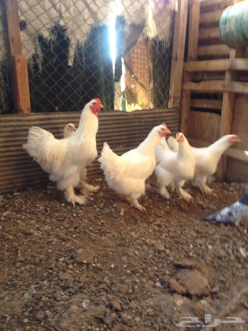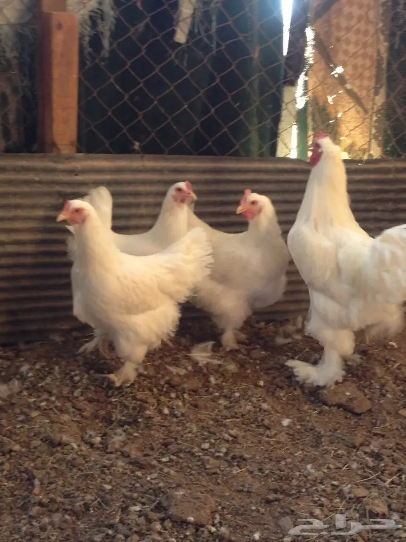 طقم براهما ابيض صك 3 دجاجات وديك نضاف وبياض وعالطبيعه افضل التصوير ضالمها الموقع / حقل ويوجد توصيل الى تبوك ع حساب المشتري ماشاء الله تبارك الله
