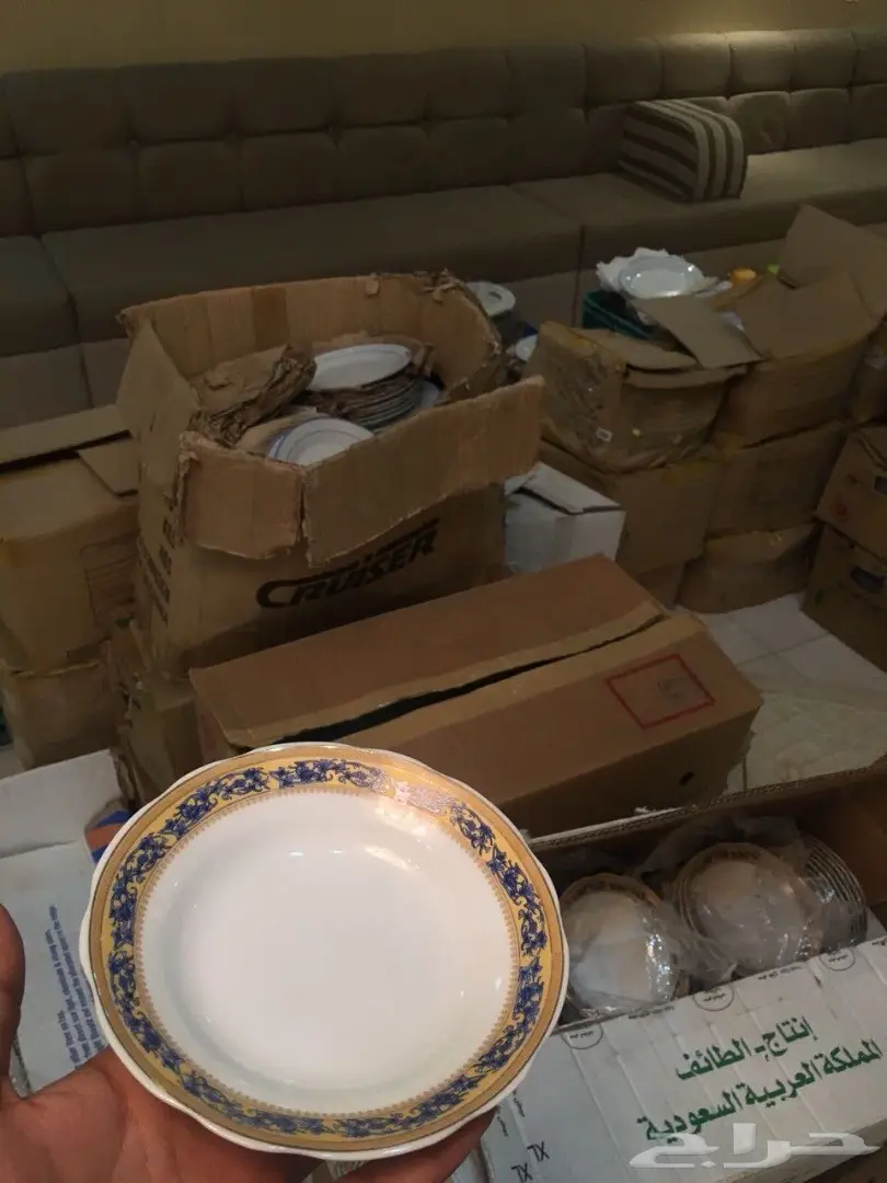 اواني منزلية * اطباق صواني جديدة * ترامس قهوة وشاهي اغلبها جديد لم يستخدم * فناجين قهوة وشاهي اغلبها جديد لم يستخدم * لوازم تقديم اخرى جديدة