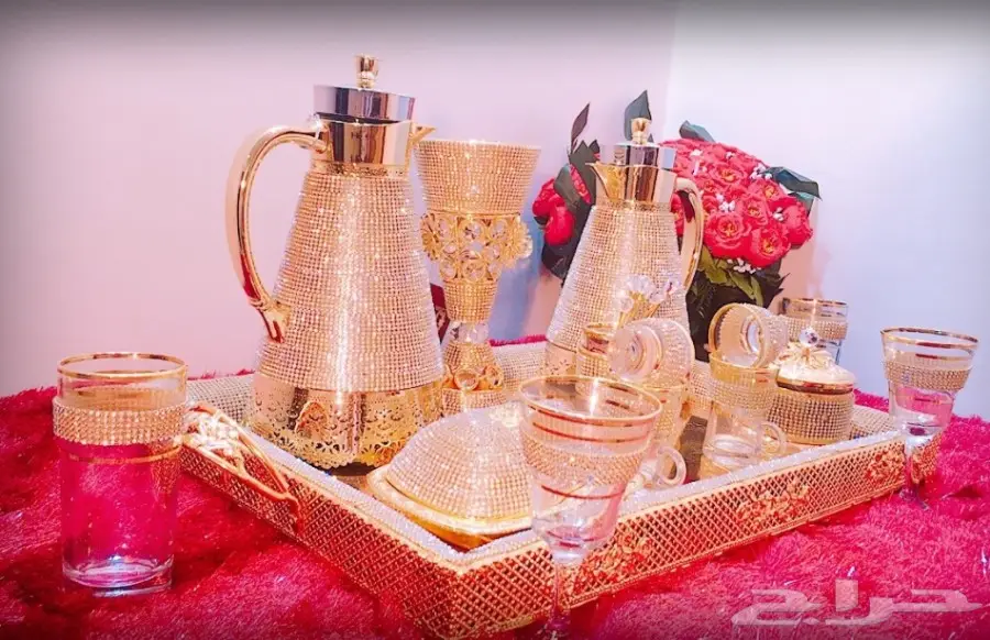طقم الضيافة الفاخر مرصع بالكريستال شاهد الصور